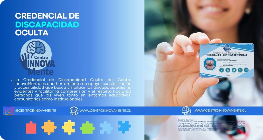 La Credencial de Discapacidad Oculta es una herramienta creada por el Centro y Fundación InnovaMente para visibilizar condiciones que no siempre son evidentes a simple vista, tales como autismo, TDAH, TDL, epilepsia, trastornos de ansiedad, entre otras.