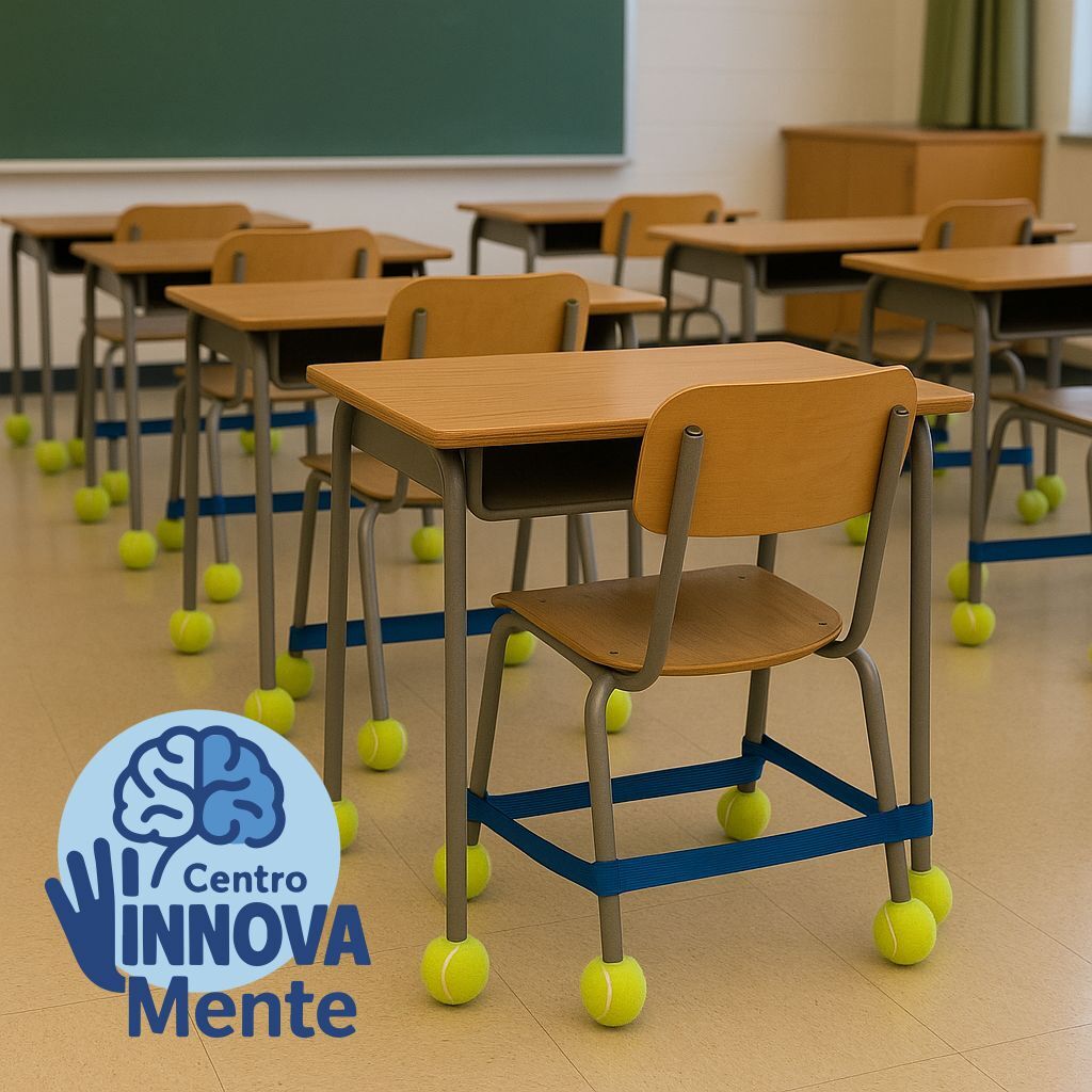 A través de nuestra técnica innovadora —que utiliza pelotas de tenis y pádel en las patas de las sillas y mesas— logramos inhibir hasta un 30% del ruido acústico presente en las aulas. Esta reducción significativa disminuye la sobrecarga auditiva, mejora la concentración, facilita el aprendizaje y promueve un ambiente escolar más respetuoso y seguro.